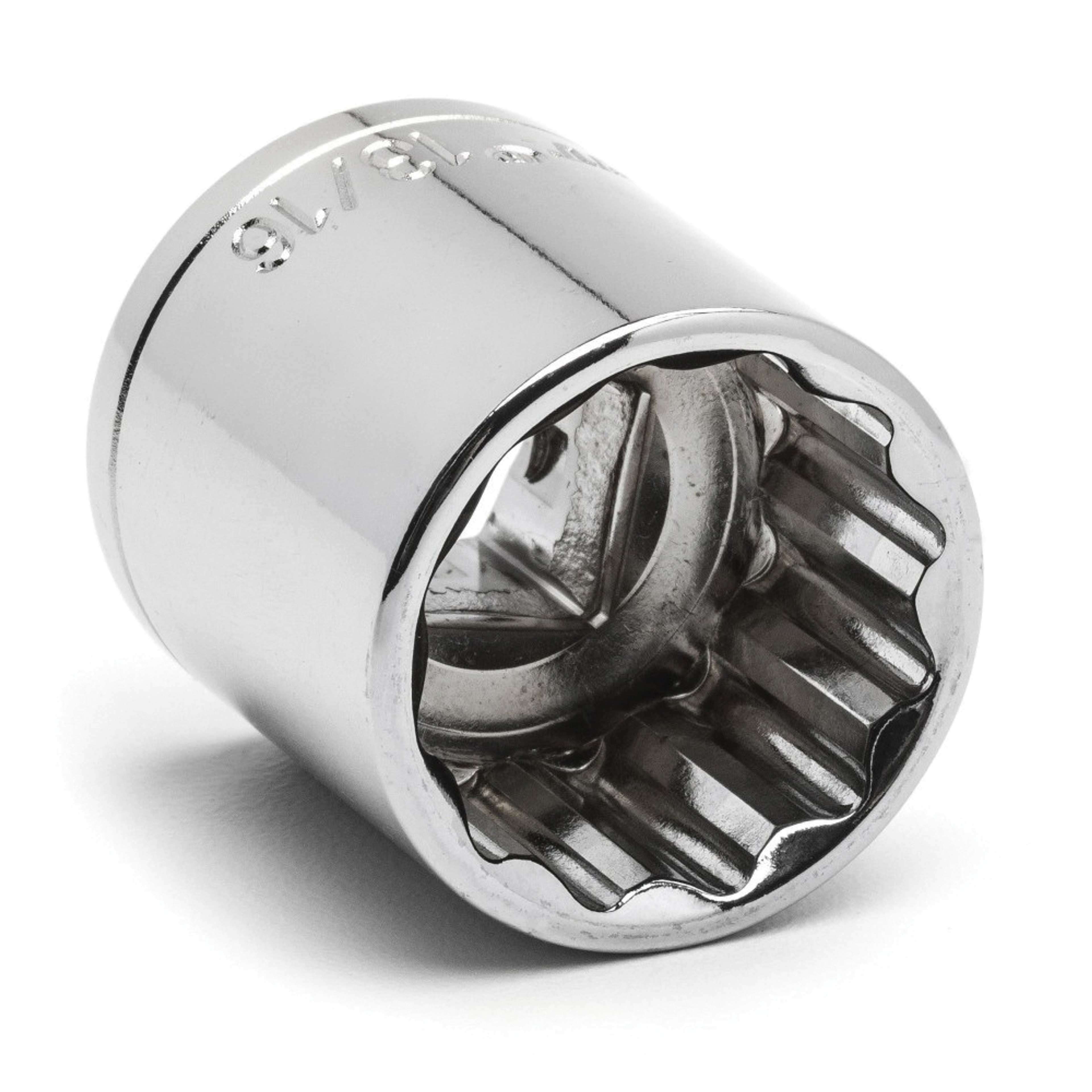 Crescent Socket, Measurement System: Imperial, Hex Drive, 3/8 in Drive, Standard Socket, 13/16 in Socket, 1.2 in Overall Length, 0.65 in Opening Depth, 1.2 in Drive End Width, 1.2 in Socket End Width, 12 Points, Straight, 0.681 in Bolt Clearance Depth, Crestoloy Alloy Steel, Polished Nickel/Polished Chrome