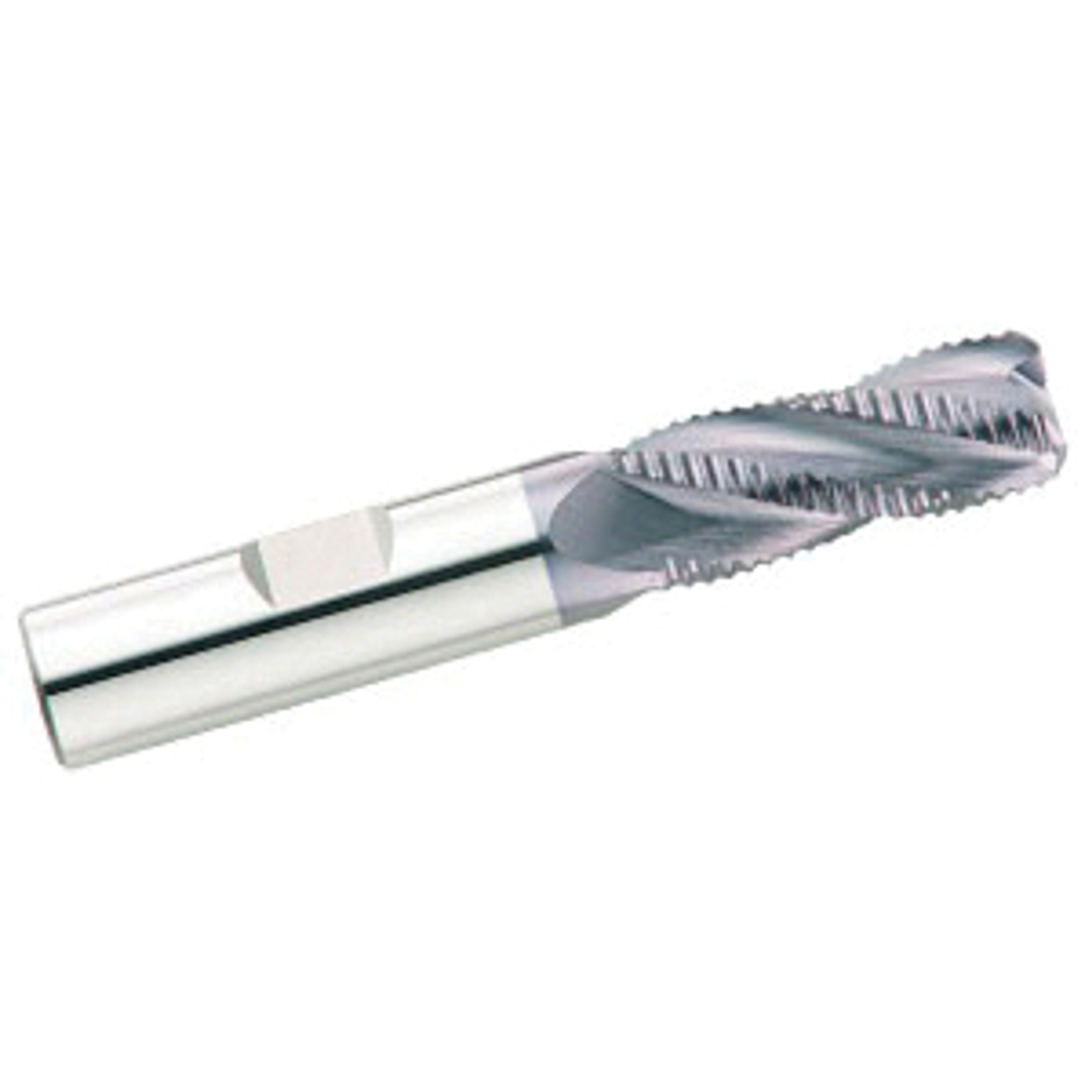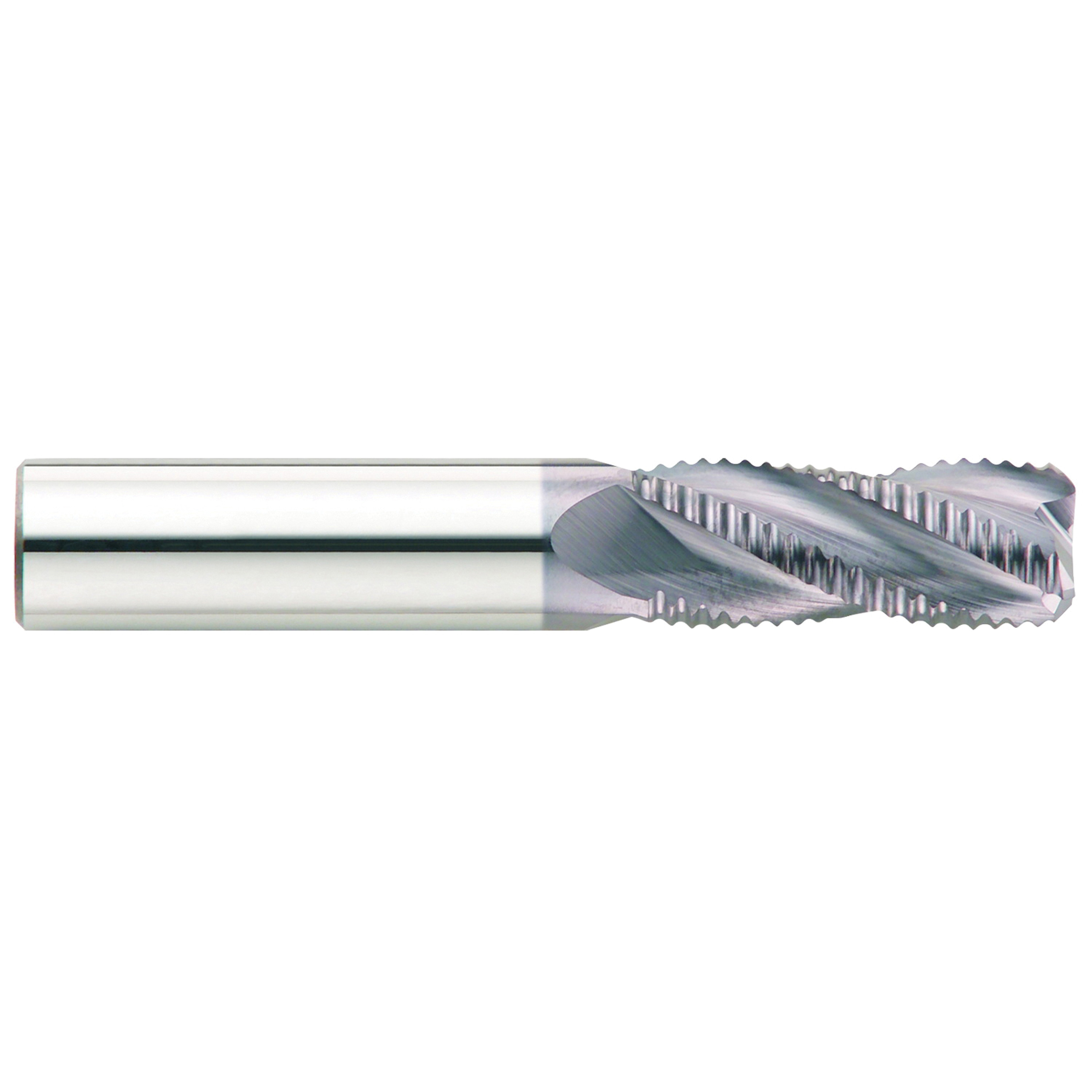 GARR Hog End Mill, Center Cutting Chamfer End High Performance, Series: VHM, 14 mm Diameter Cutter, 75 mm Overall Length, 19 mm Length of Cut, 4 Flutes, Staggered Flute, 14 mm Shank Diameter, Right Hand Cutting Direction, 30 deg Helix Angle, Weldon Flat Shank, Submicron Grain Solid Carbide, AlTiN/X.CEED Coated