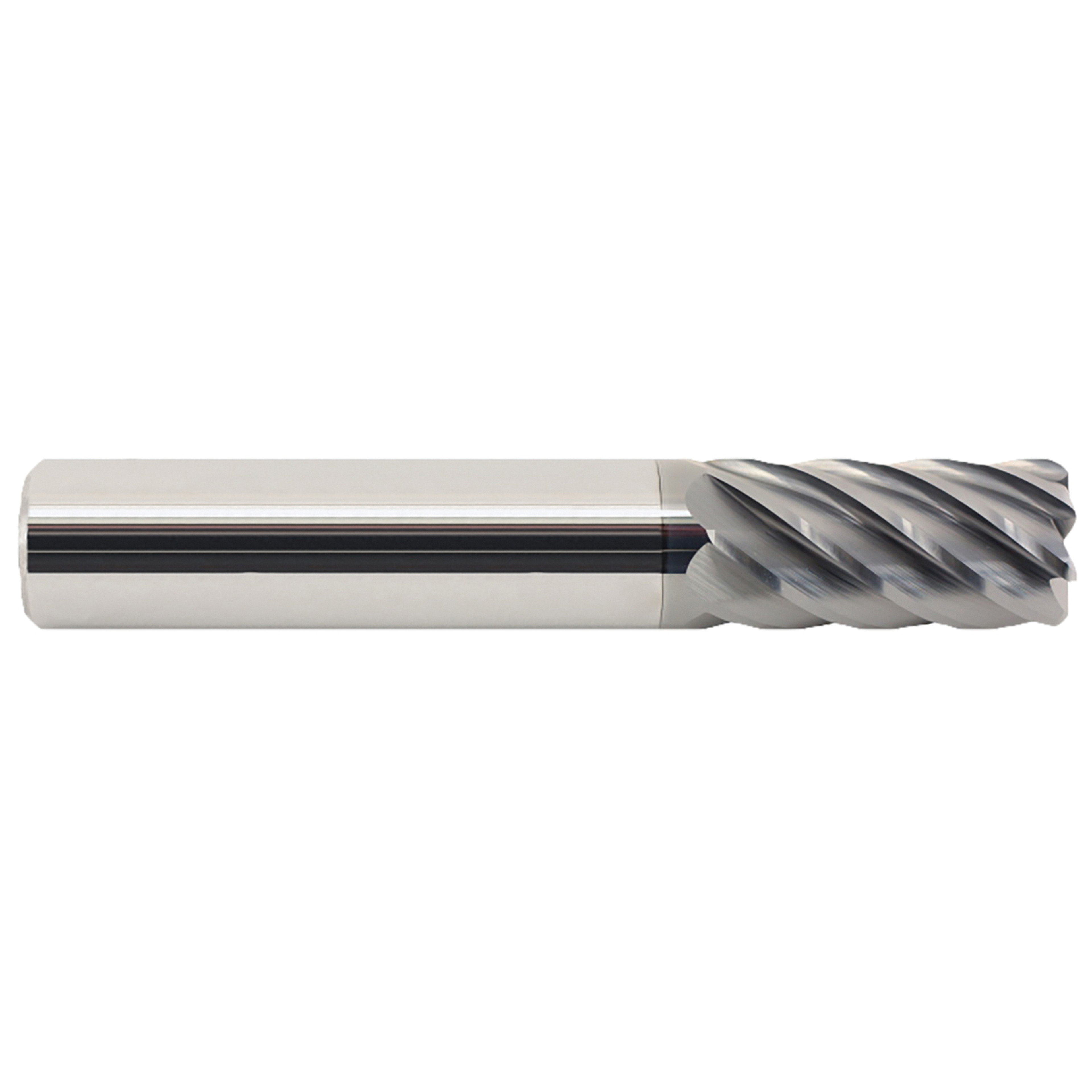 GARR End Mill, High Performance Non-Center Cutting Single End, Series: TMR, 1/2 in Diameter Cutter, 0.02 in Corner Radius, 3 in Overall Length, 1 in Length of Cut, 7 Flutes, Spiral Flute, 1/2 in Shank Diameter, Right Hand Cutting Direction, 38 deg Helix Angle, Round Shank, Submicron Grain Solid Carbide, AlCrN Coated