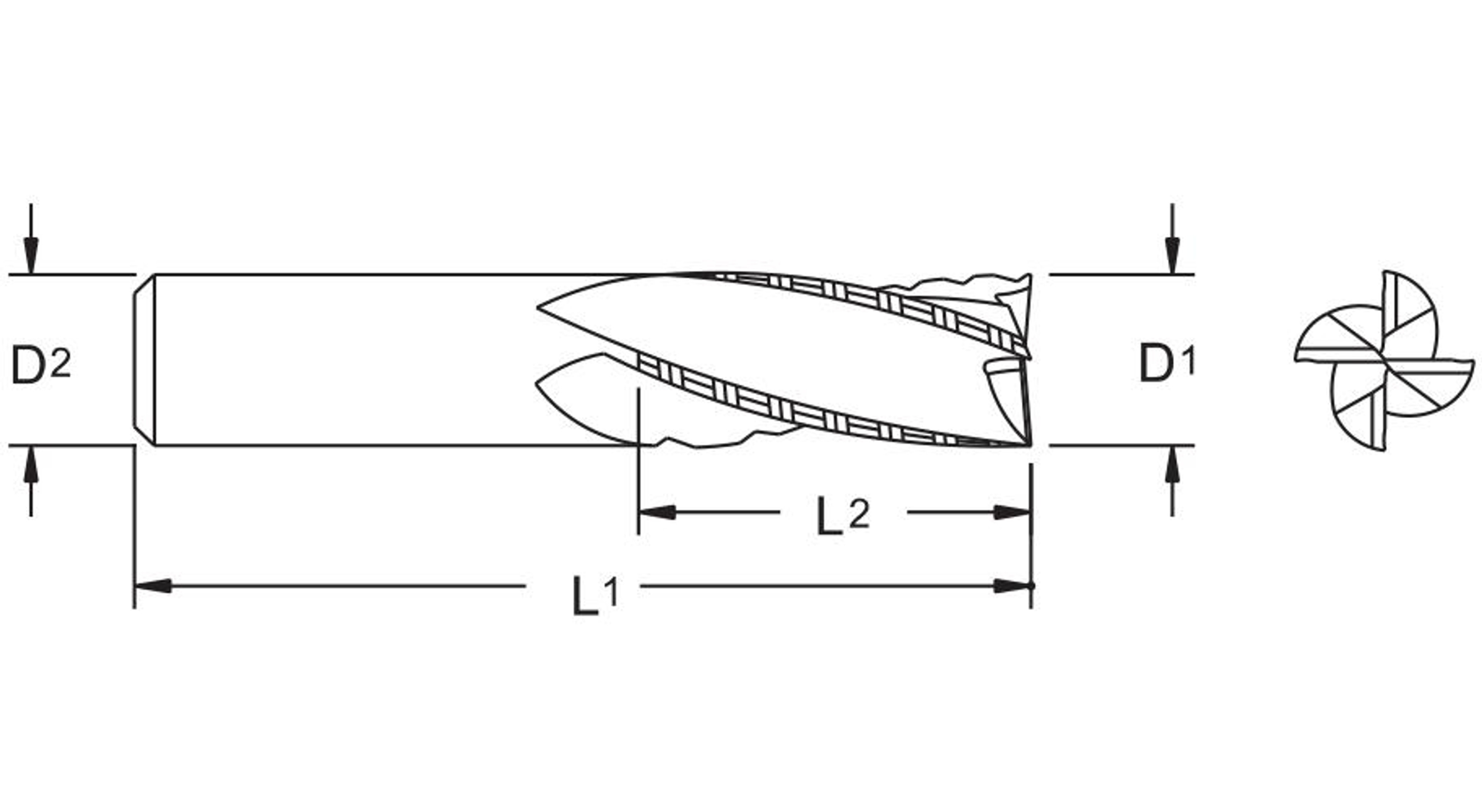 M.A. Ford, 11450000AW, End Mill Chipbreaker, Series: TuffCut, 1/2 in Diameter Cutter, 3 in Overall Length, 4 Flutes, 1/2 in Shank Diameter, 30 deg Helix Angle, Weldon Shank, Carbide, ALtima