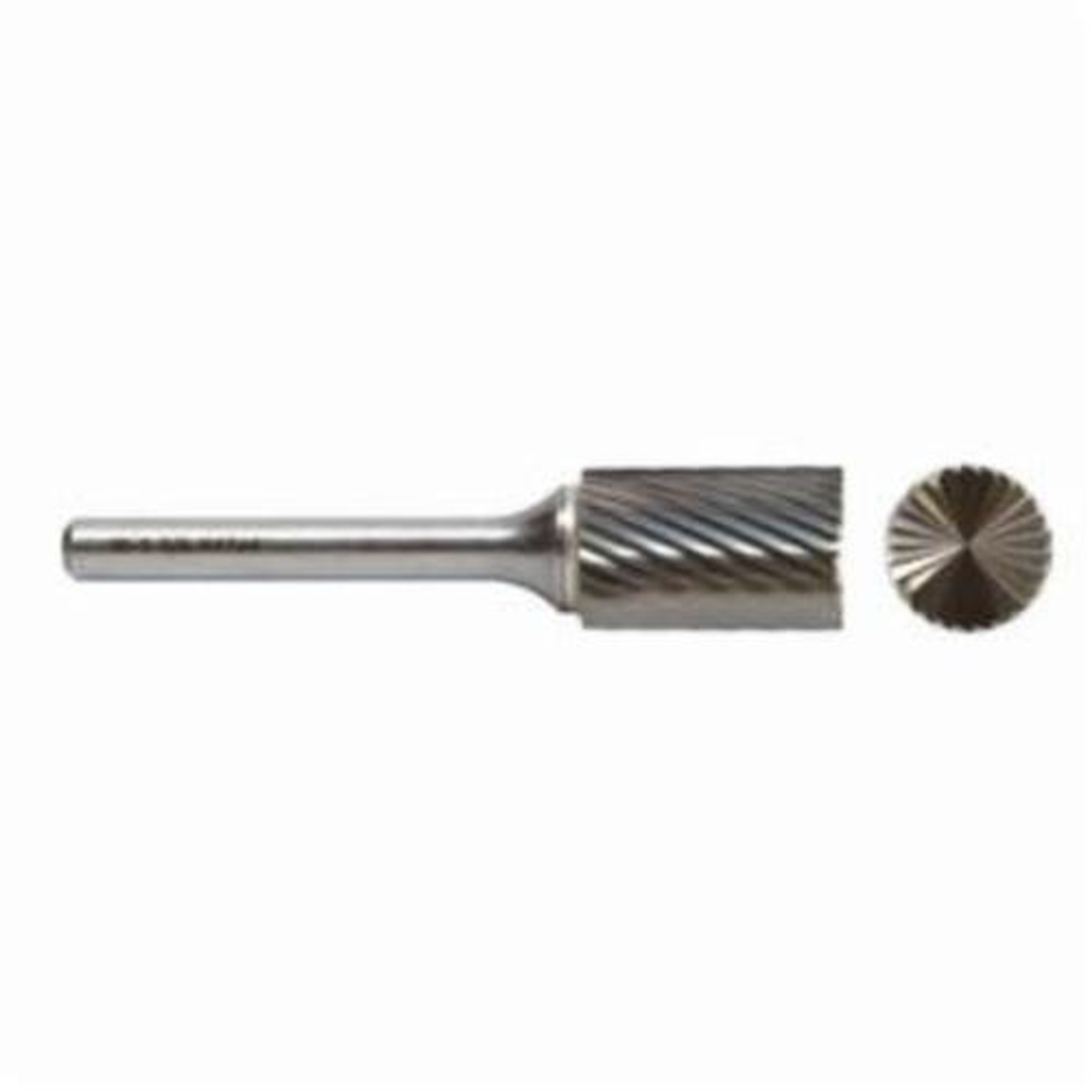 M.A. Ford Carbide Burr, Metric, Series: 41ESB, Flat End, 6 mm Diameter Head, 16 mm Length of Cut, 50 mm Overall Length, Cylindrical Head Shape, Fine Cut Cut, 6 mm Shank Diameter, Solid Carbide Head, Uncoated Head Coating, 45000 rpm Maximum, Applicable Materials: Hardened Steel, Stainless Steel and Steel, Industry Specification: SB-1M
