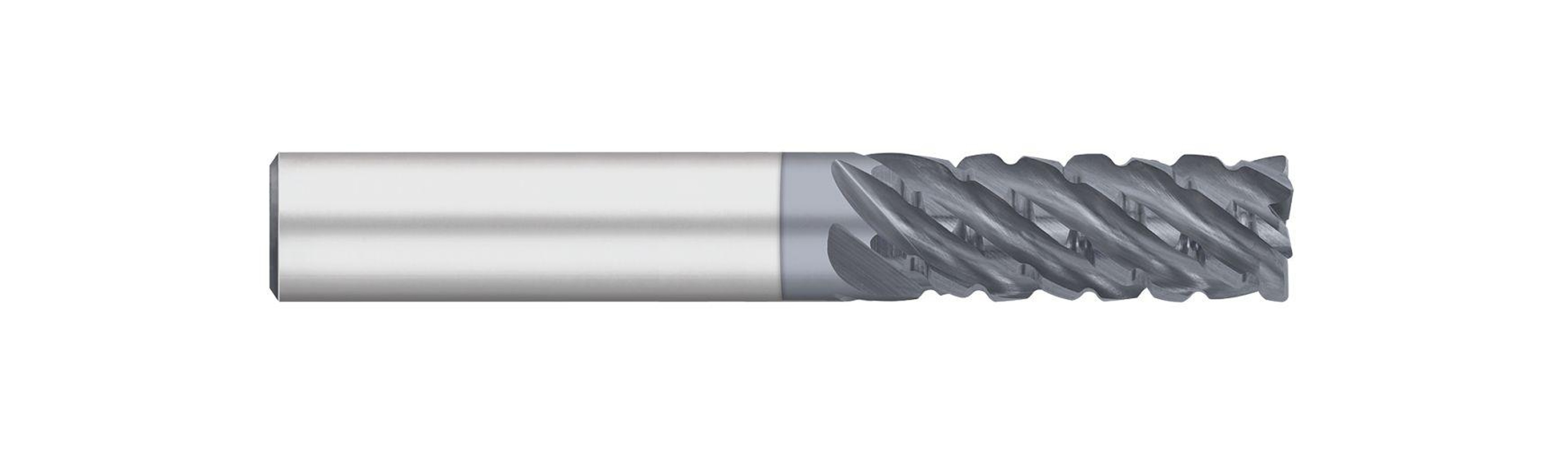 Titan USA, TC13464, End Mill, Variable Index Chipbreaker, Series: 134, 0.375 in Diameter Cutter, 0.015 in Corner Radius, 3 in Overall Length, 1.25 in Length of Cut, 6 Flutes, Upcut Flute, 0.375 in Shank Diameter, Right Hand Cutting Direction, 38 deg Helix Angle, Cylindrical Shank, 1.75 in Shank Length, Solid Carbide, ALCRO-Max