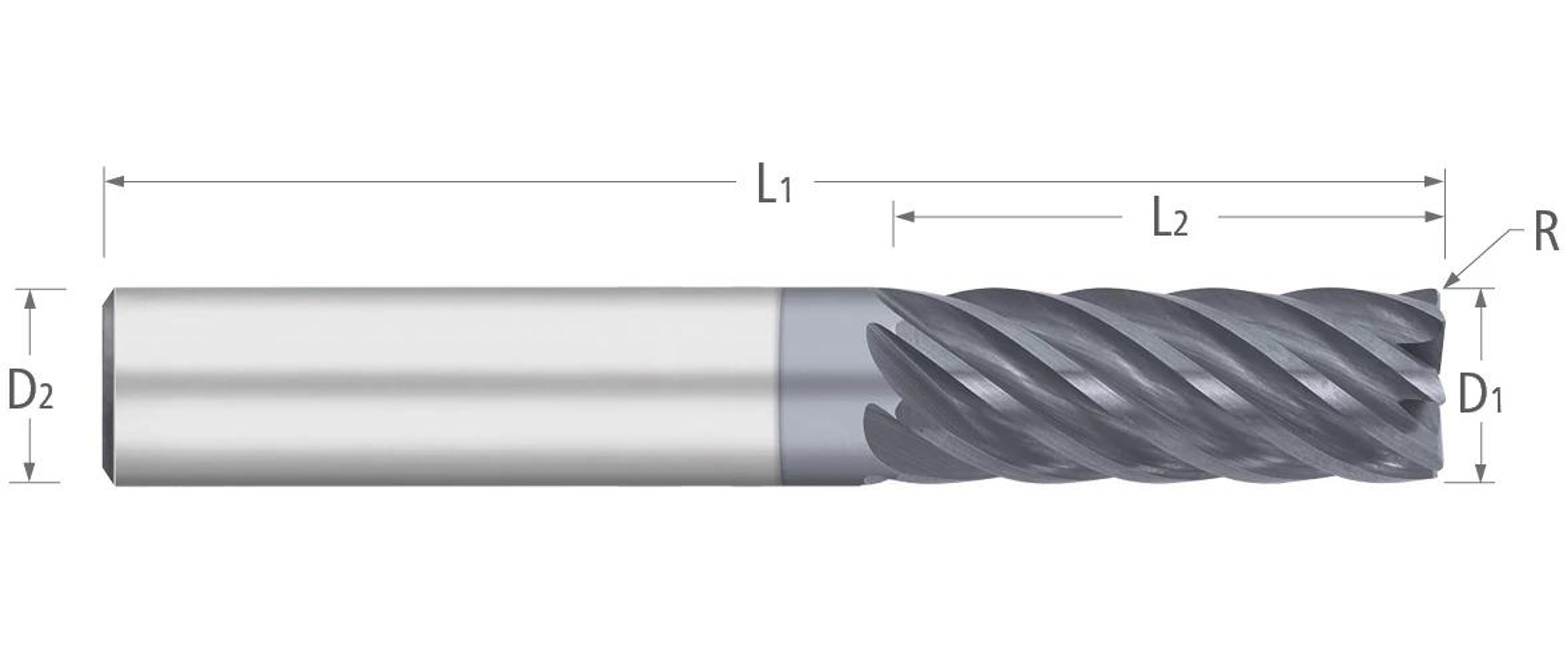 Titan USA, TC64824, End Mill, Variable Index, Series: 648, 0.625 in Diameter Cutter, 0.03 in Corner Radius, 3 in Overall Length, 0.75 in Length of Cut, 7 Flutes, Upcut Flute, 0.625 in Shank Diameter, Right Hand Cutting Direction, 38 deg Helix Angle, Cylindrical Shank, 2.25 in Shank Length, Solid Carbide, ALCRO-Max